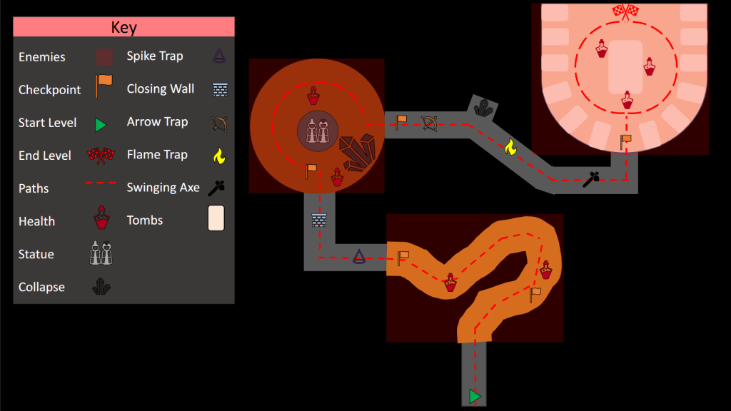 - Trap mechanics including: flame, spike, axe, walls, and arrow